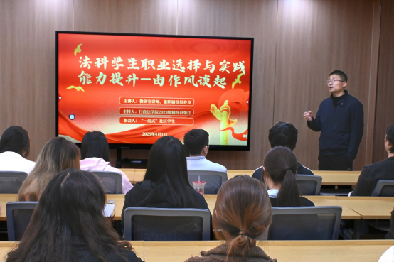 为提升学生的实践能力,帮助大家更好地规划职业发展方向,2025年4月1日,小宝影院 于“一站式”学生社区举办以“法科学生职业选择与实践能力提升”为主题的专题讲座,本次讲座由小宝影院 纪检监察教研室兼职辅导员乔良老师主讲,学院2023级辅导员柴江主持,“一站式”学生社区60多名学生参加。