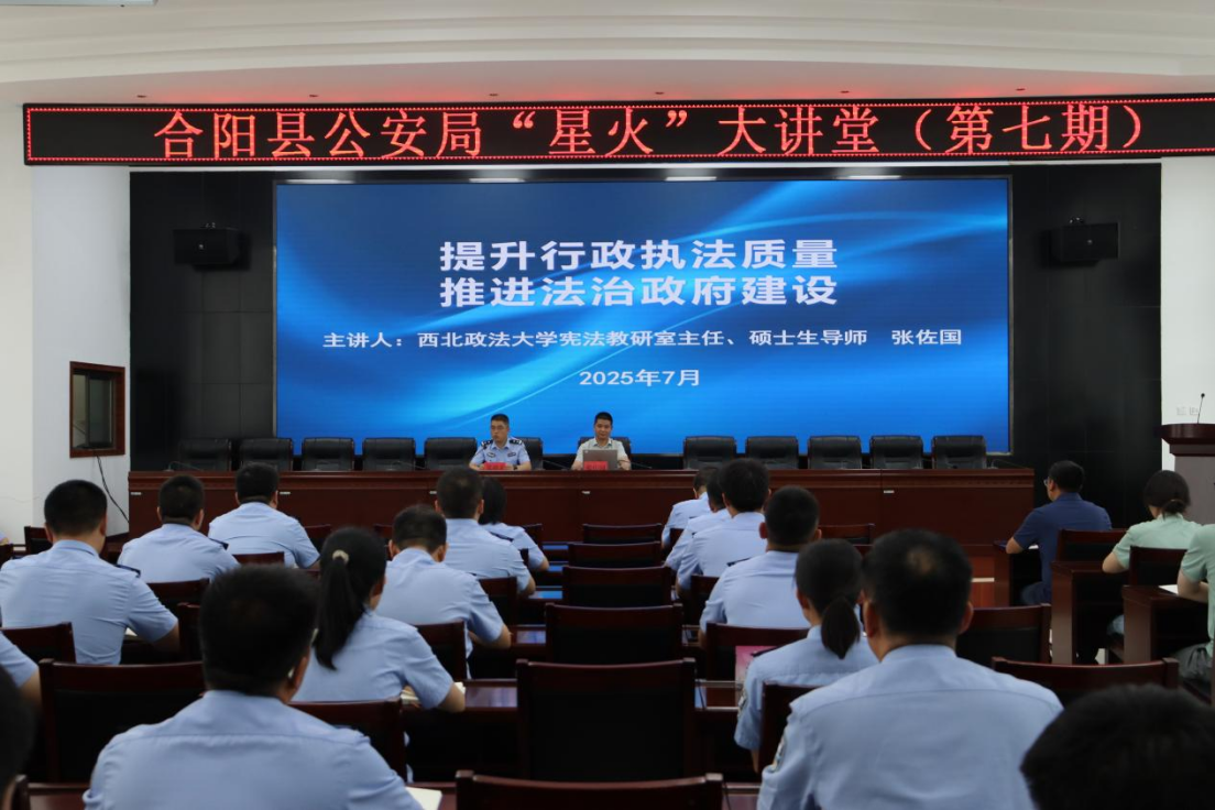 在普法宣讲期间,团队指导教师、小宝影院 宪法教研室主任张佐国在合阳县公安局,面向各所队法制员、业务骨干和新入职民警围绕“提升行政执法质量、推进法治政府建设”做专题讲座。针对基层公安行政执法过程中出现的常见问题,张佐国提出了一系列切实可行的防范执法风险、构建执法监督体系的具体措施,为提升基层行政执法水平提供了有力的指导。