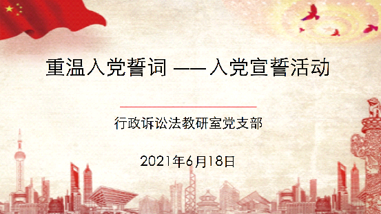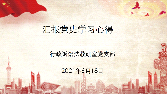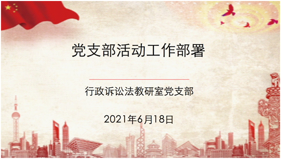 共庆中国共产党百年华诞,永远感党恩听党话跟党走。6月18日上午,行政诉讼法教研室党支部在学院党员活动室举行了主题党日活动。