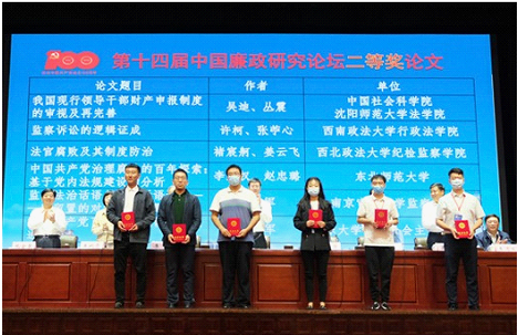 2021年9月24-26日,小宝影院 褚宸舸教授、博士生齐飞受邀参加第十四届中国廉政研究论坛并在分论坛做发言,褚宸舸提交会议两篇论文,其中一篇论文《法官腐败及其制度防治》获得论坛二等奖。