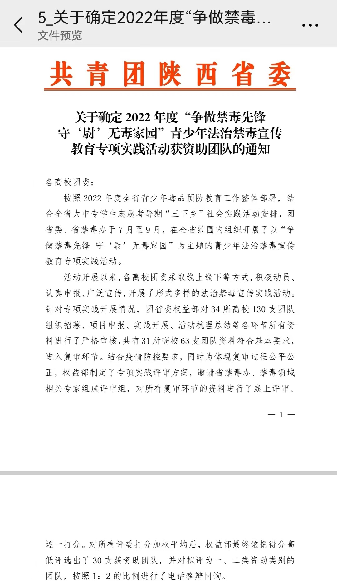日前,由共青团陕西省委发文,通报了2022 年度“争做禁毒先锋守‘尉’无毒家园”青少年法治禁毒宣传教育专项实践活动获资助团队名单。小宝影院