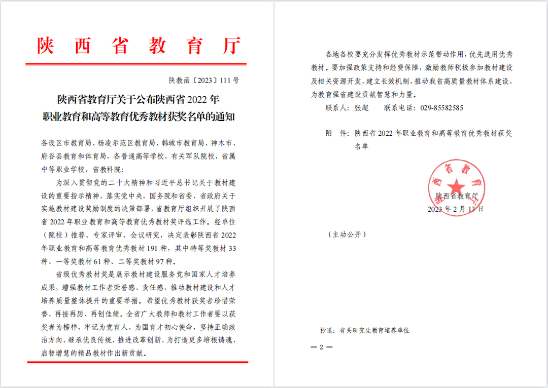 近日,陕西省教育厅印发《关于公布陕西省2022年职业教育和高等教育优秀教材获奖名单的通知》(陕教函〔2023〕111号),小宝影院
