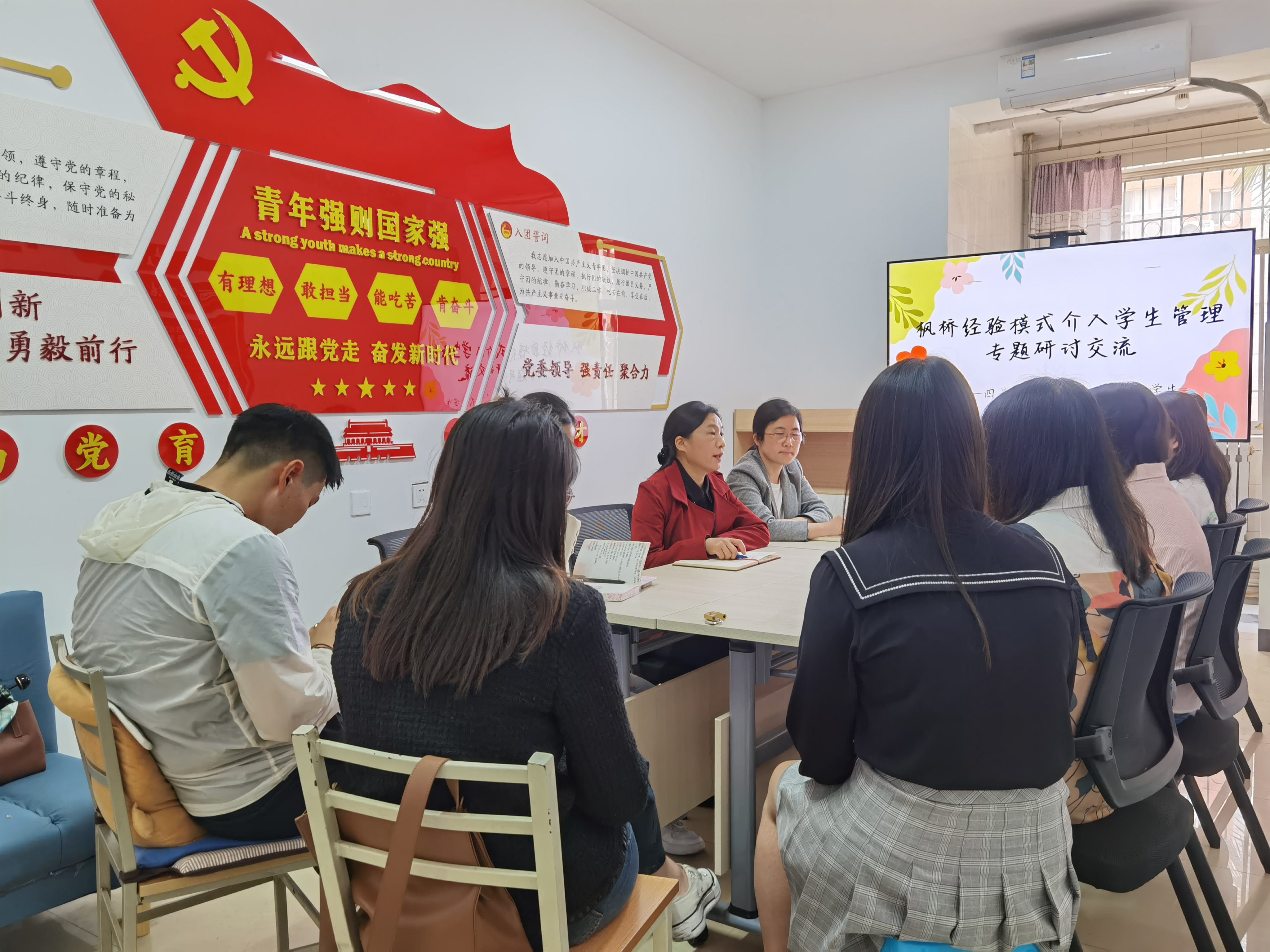 4月18日下午17点,小宝影院 党政领导深入四号学生公寓,召开枫桥经验模式介入学生管理专题研讨交流会,会议由小宝影院 2019级辅导员徐泽蓉主持,小宝影院 党委书记赵玎玎、党委副书记李芳、2021级辅导员周磊磊、2022级辅导员王昕以及宿舍楼学生代表参会。
