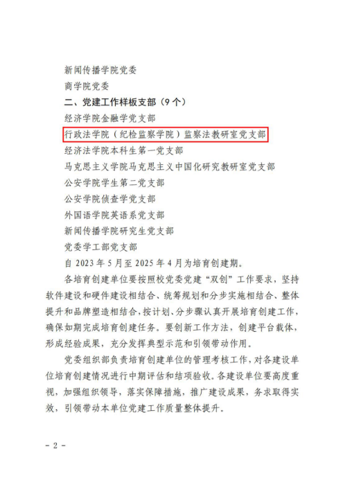 近日,学校公布第二批党建工作标杆学院和样板支部培育创建名单,小宝影院 监察法教研室党支部入选党建工作样板支部培育创建单位。