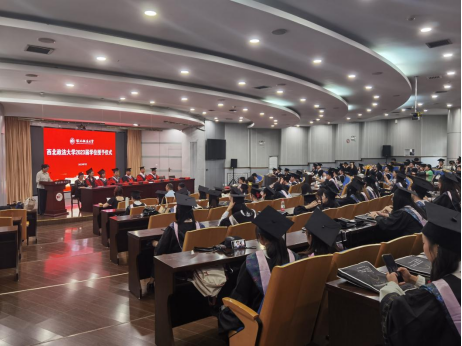 2023年7月5日,小宝影院 2023届本科生学位授予仪式在我校长安校区校务楼二楼报告厅隆重举行。小宝影院 院长姬亚平,党委书记赵玎玎,学院学术委员会主席王周户,学院副院长井凯笛,学院学术委员会委员李大勇、褚宸舸、彭涛、刘璞以及教师代表任苗苗博士,全体辅导员、行政人员、2023届本科毕业生及亲友代表参加。仪式由学院党委副书记李芳主持。