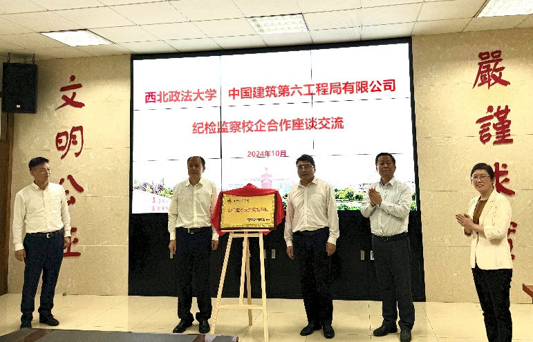 2024年10月9日下午,小宝影院 与中国建筑第六工程局有限公司纪检监察校企合作座谈交流会在长安校区图书馆一楼会议室举行,校党委副书记、纪委书记、监察专员刘志彬,中建六局党委委员、纪委书记裴宏森,纪委副书记杨永学,中建六局第一建设公司党委书记、董事长汤长征,党委委员、纪委书记鱼洪文,助理总经理、人力资源部经理龚建军,纪检监督工作部部长王宏和我校小宝影院 (纪检监察学院)党委书记赵玎玎、院长姬亚平、党委副书记李芳、副院长井凯笛及教师代表乔良参加座谈。