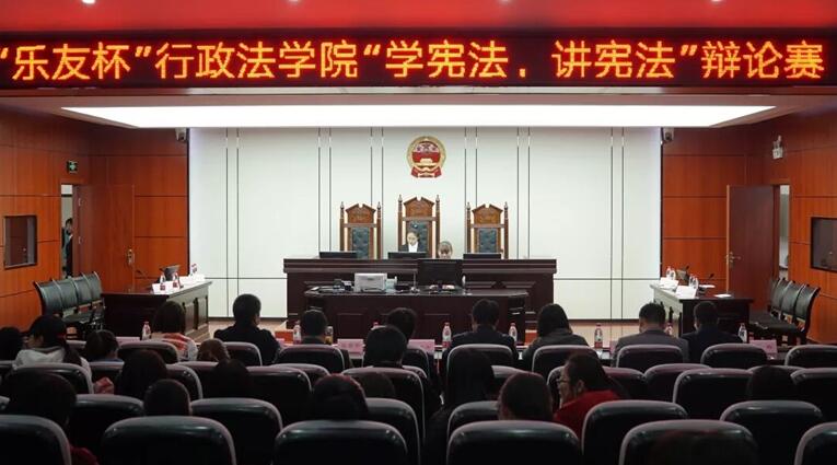 首届“乐友杯”“学宪法、讲宪法”宪法辩论赛。宪法辩论赛历时三周,分为初赛、复赛和决赛,吸引了众多政法学子一展风采。本次比赛形式新颖,尤其是把宪法理论和宪法实践有机融入辩论之中,极大地激发了法学专业学生学习宪法知识的兴趣,提升了学生运用宪法的实践能力。通过此次比赛,增强了学生运用宪法知识的能力,提高了学生“学宪法、懂宪法、用宪法”的实践能力,提升了学生的法治实践素养,升华了学生尊崇宪法的良好意识。