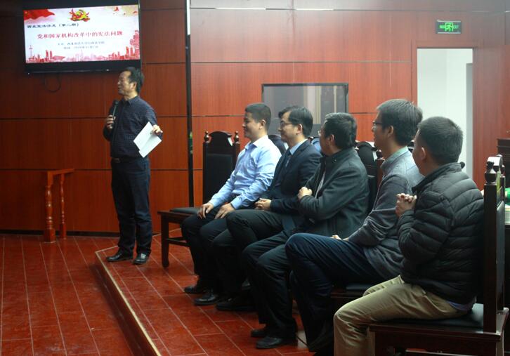 宪法教研室侯西勋副教授、行政诉讼法教研室主任彭涛教授、宪法教研室主任张佐国博士、行政法教研室井凯笛博士、宪法教研室张文博士分别以“机构改革对行政法律制度的影响”“宪法和合宪性审查” “机构改革中的权力属性配置”“机构改革背景下的监察体制改革”“宪法修改与监察体制改革”“宪法文本中的中国共产党”为主题进行学术交流并与学生展开互动。另外,小宝影院