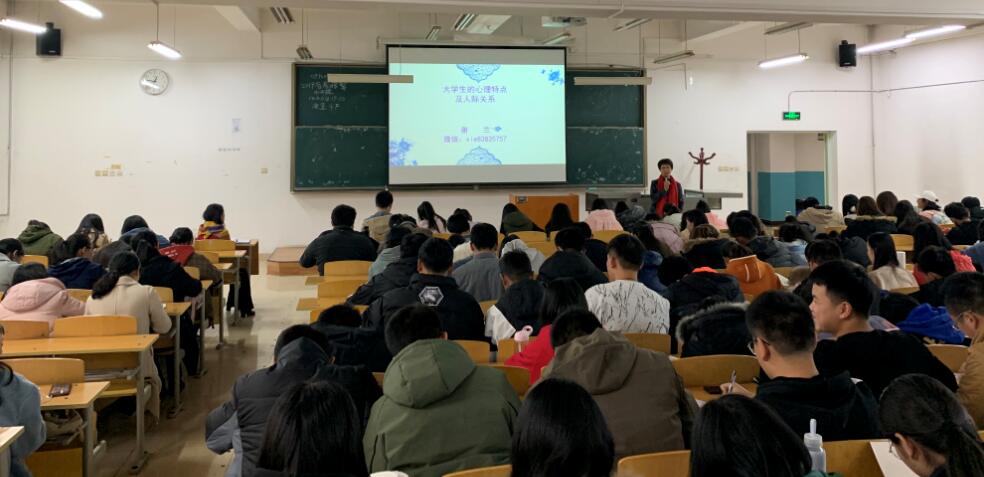 谢兰老师就大学生的心理特点及人际关系给新生提出了很多真知灼见。老师引导同学们走出社交的恐惧圈,鼓励同学们去社交。谢老师根据心理学原理,深入浅出的分析了大学生的心理特点,总结出了以下几个特点:富有孤单感、具有防备心理、渴望被关注、富于幻想、独立意识增强、冲动。接着分析了同学们这些特点的来源:家庭背景、社会背景、个人性格……