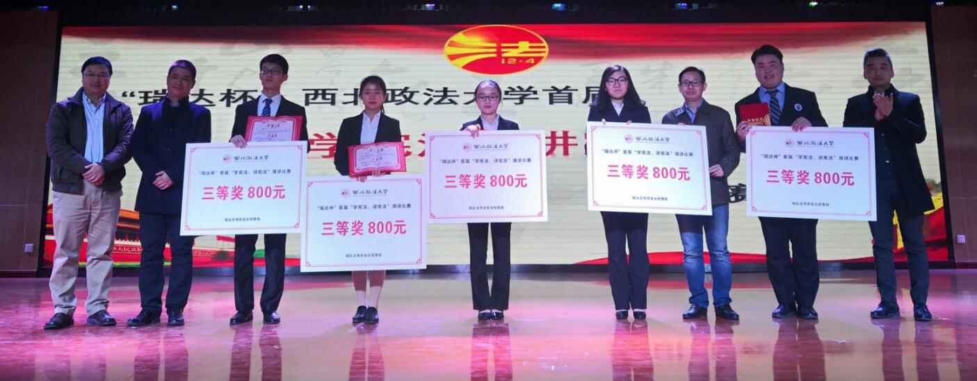 团委副书记燕楠老师,宪法教研室主任钱锦宇教授,宪法教研室副主任张佐国副教授,陕西广播电视台著名主持人、《百姓大舞台》节目主持人茹博浩老师,瑞达法考西安分校胡英才校长,小宝影院