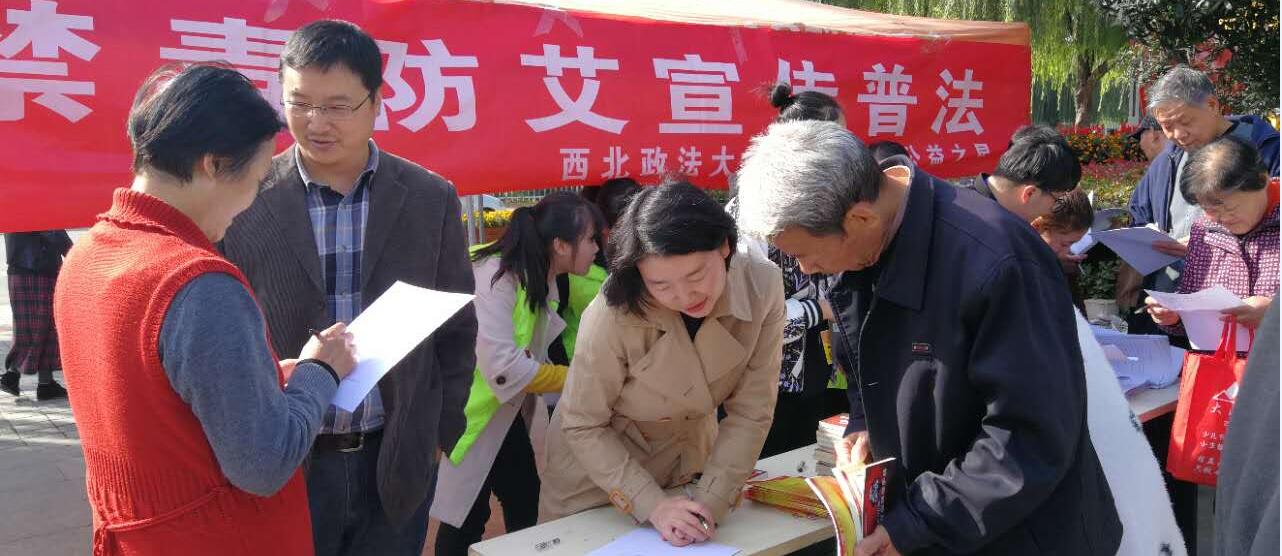 2017年11月7日上午9:00,由小宝影院 主办,“公益之星”社团携手行政法诊所承办,以“禁毒尚法,守护青春之花’为主题的禁毒防艾普法宣传教育活动,在长安广场举行。小宝影院 宪法教研室主任钱锦宇老师、行政诉讼法教研室主任彭涛老师、行政法教研室张艳老师,学院党委副书记李芳老师,以及学生30多人共同组织、开展了宣传活动。