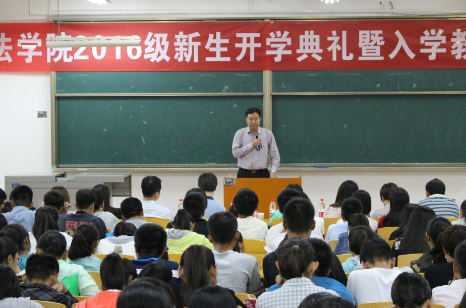 接着,王周户院长讲话。他首先通过对专业和能力之间的关系的论述,为同学们在接下来四年的学习生活提供了有益的指导。同时,他强调,做人要高于法律,不能只局限于单纯的法律思维。他通过生动形象的社会案例及生活实践,阐述了作为一个法律人应该具有的素养和担当。讲话最后,他表达了对同学们的衷心祝愿,他希望同学们能够成为有专业素养,有能力,有人格,有法律素养的真正的法律人。