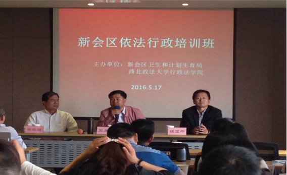 副院长姬亚平教授主持,行政法学院院长王周户、广东省江门市新会区卫生与计划生育局党委书记容础超等领导参加了开班典礼。本期培训班主要是对广东省江门市新会区卫生与计划生育局的领导干部及其下属单位负责人进行为期五天的关于如何依法行政的培训。