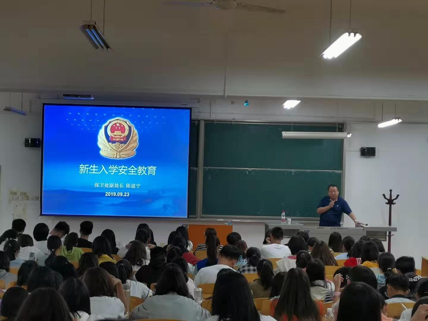 为加强2019级新生安全知识教育,小宝影院 于9月23日19时30分在天平楼AJ23召开了新生入学系列讲座之安全教育。本次讲座主讲人由校保卫处副处长陈建宁老师担任。