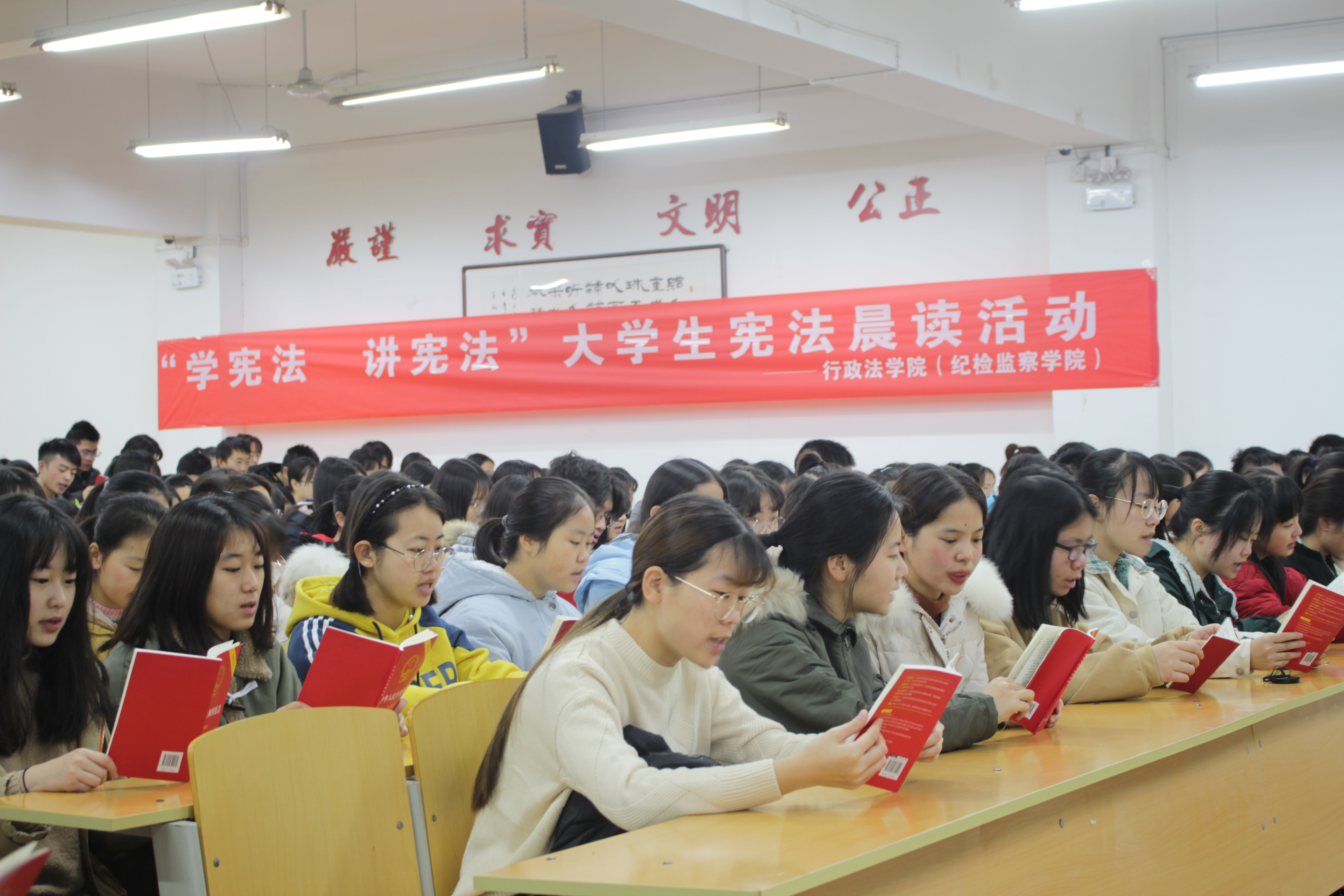 2019年12月3日清晨,小宝影院 2019级全体同学在晨读教室AJ33开展了“学宪法 讲宪法”大学生宪法晨读活动,同学们通过领读与自由诵读等多种方式,仔细阅读宪法法条,全面了解宪法法规,增强了同学们懂法、守法、爱法的意识。