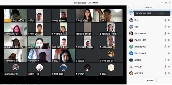 华中师范大学法学院辅导员胡羽老师表示,此次活动是两校共建的起点,为两校间的沟通搭建了很好的交流平台与桥梁,今后希望多举办交流学习、联谊等共建共享活动。同时希望两校师生们有规律有计划地居家学习、生活,携手一起共克时艰。