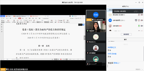 最后,小宝影院 2018级研究生党支部组织委员王艾捷表示,本次共建活动为支部提供了一次很好的学习机会,无论是理论学习还是活动开展,自己都收获良多,并期望疫情过后能够有机会与华中师范大学法学院同学进行面对面交流。