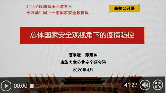 2020年4月15日为我国第五个全民国家安全教育日。为让大学生深刻认识国家安全,教育部日前发布了《关于组织开展2020年全民国家安全教育日宣传教育日的通知》。通知一发布后,小宝影院 积极响应,组织全体2019级学生共同学习《总体国家安全观视角下的疫情防控》公共课。
