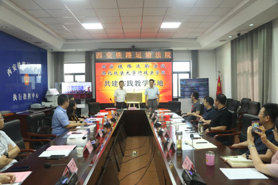 与西安铁路运输法院共建实践教学基地签约和实务导师导师聘任仪式在西安铁路运输法院举行。卫应举院长、康力副院长、李涛局长、冯悦副院长、赵新副院长、杨娜专委、赵欣庭长、胡海军庭长,小宝影院