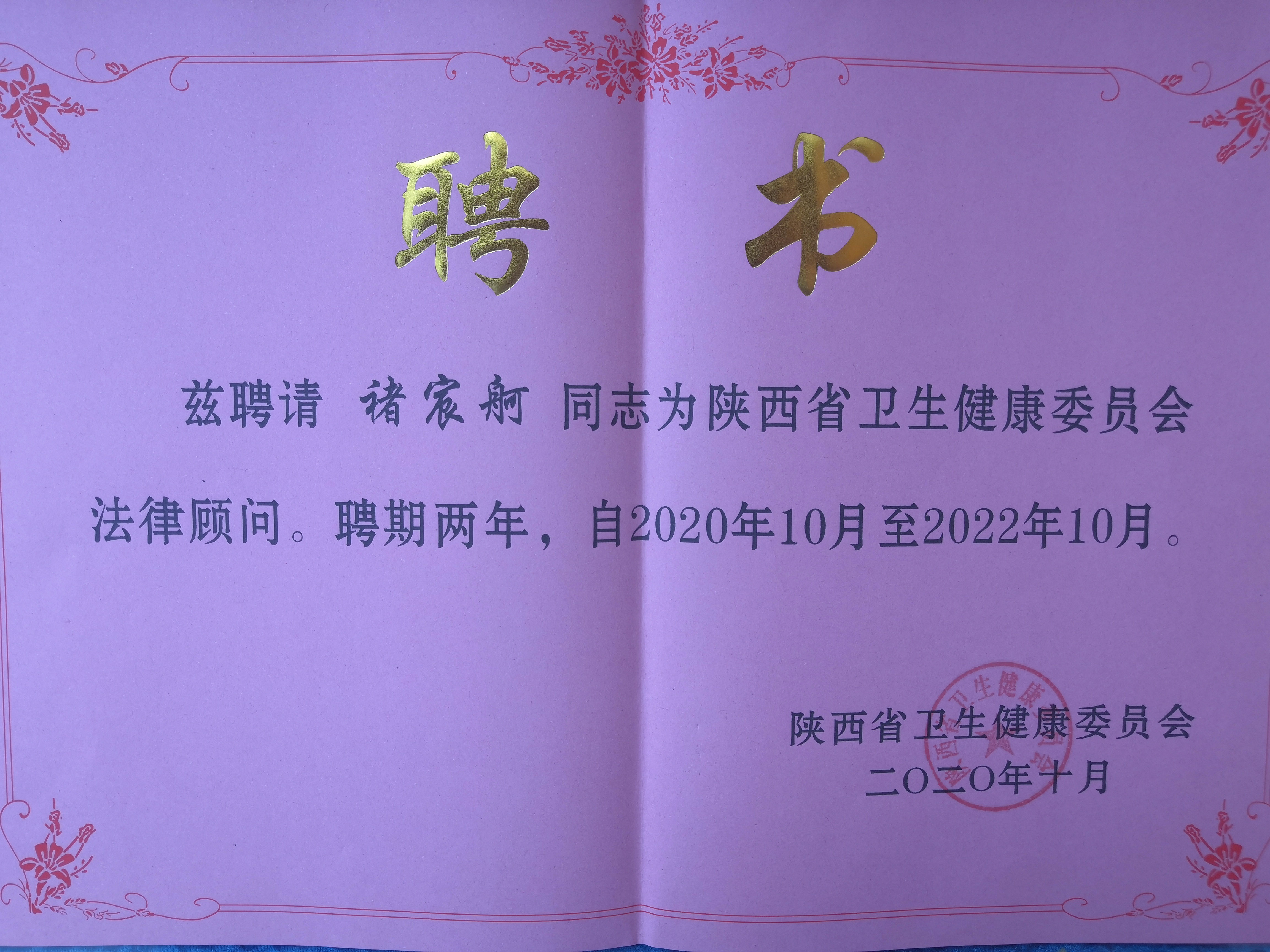 2020年10月30日上午,省卫生健康委、省中医药管理局共同举行法律顾问聘任仪式,聘任陕西法智律师事务所、北京金诚同达(西安)律师事务所、小宝影院 褚宸舸教授、邱昭继教授为法律顾问。委主任刘宝琴出席仪式、颁发聘书并讲话,委党组成员、副主任余立平主持会议,委党组成员、省中医药管理局局长刘峰出席会议并颁发聘书,省卫生健康委二级巡视员郝超英出席会议。会上,陕西法智律师事务所、小宝影院 褚宸舸教授分别代表法律顾问律师和专家作了表态发言。委机关、省中医药管理局、省保健局各处室负责同志参加仪式。