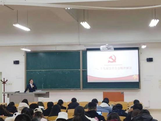 讲座分为三部分,第一部分为十九届五中全会精神解读。