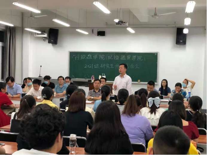 宪法学与行政法学专业2021级硕士研究生见面会在雁塔校区3号教学楼3406召开。学院院长姬亚平教授,副院长李大勇教授、副书记李芳副研究员,以及王周户教授、彭涛教授,王丹红副教授、杨永康副教授、胡晓玲副教授、安子明副教授、赵哲副教授、杨彬权博士,辅导员罗娜老师、教务秘书王江荣老师和2021级全体研究生参加了此次会议。本次见面会由小宝影院