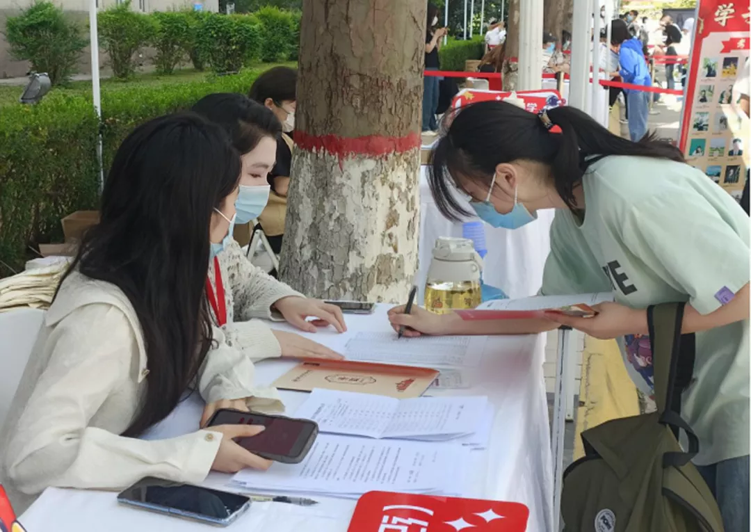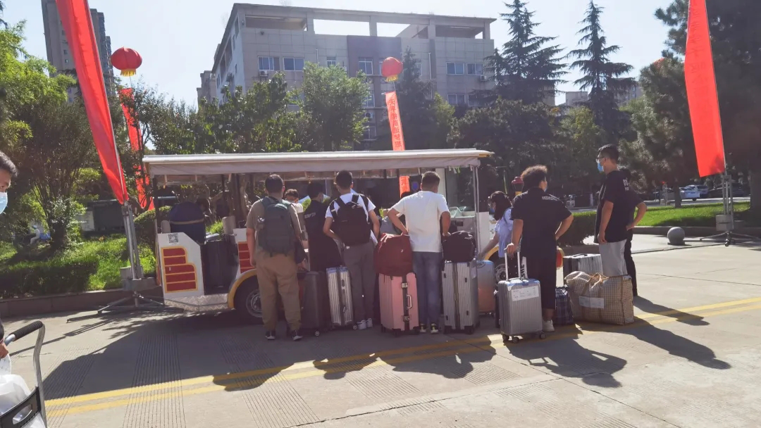 迎新当天,学院2021级本科辅导员周磊磊、2022级新生辅导员王昕,以及2021级40多名志愿者早早来到迎新现场为新生提供贴心专属服务。在学校门口和宿舍楼下设置学生行李寄存处和行李托运点,专门负责学院新生的行李搬运。