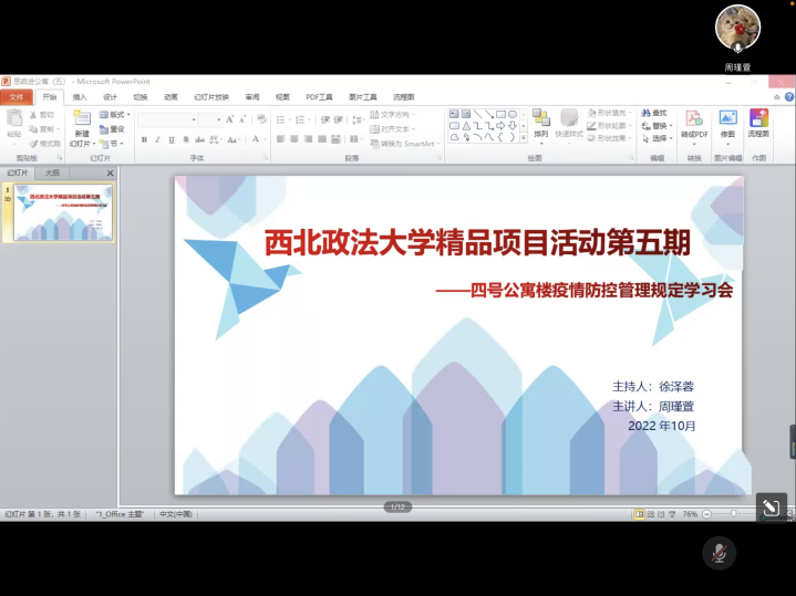 学生工作精品项目活动第五期——四号公寓疫情防控管理规定学习会在线上举行,会议由经济学院辅导员周瑾萱主讲,小宝影院