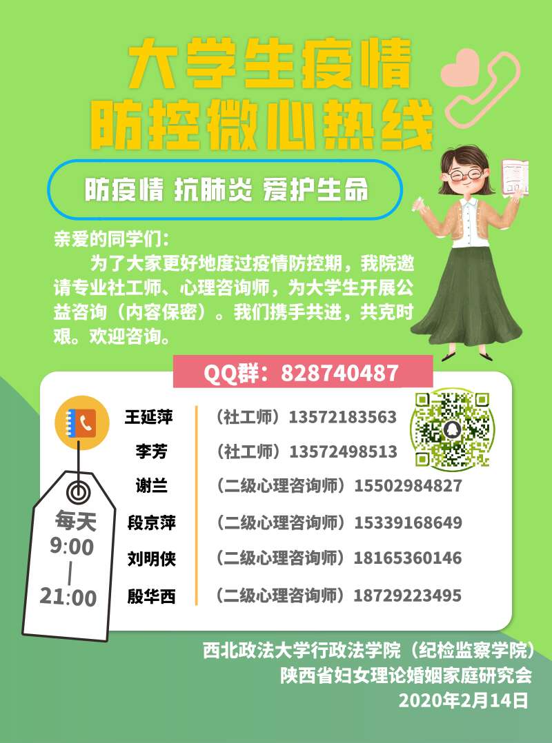 2020年3月9日14:30至16:00,小宝影院 组织辅导员、研究生、本科生500多名师生(没有线上课程任务的)共同线上收看教育部“全国大学生同上一堂疫情防控思政大课”。 线上讲课中,四位教授把疫情防控中涌现出的先进典型、英雄人物和感人事迹,作为在线课堂中的生动教材和鲜活事例,将爱国主义、制度优势、历史传承等知识点讲授给学生,将规则意识、责任意识、团结精神、担当精神传递给学生,让学生们在学习知识的同时能够明事理、悟真理、知感恩。 通过收看,师生们更加认识到,在以习近平同志为核心的党中央坚强领导下打赢这场疫情防控人民战、总体战、阻击战的信心和决心,深刻认识到中国抗击疫情过程中所彰显的中国共产党的领导和中国特色社会主义制度的显著优势,中国特色社会主义制度优势已经转化为公共卫生治理中的“联防联控、科学防治、精准施策”的治理方案与治理效能;体验到“一方有难、八方支援、众志成城、共克时艰”的温度与坚守;感受到中国方案与中国精神的智慧与伟大;见证了新时代青年人的责任与勇于担当,舍小我顾大我,舍小家保大家的大爱与格局。 同时,也引导大学生正确理性应对疫情,致敬逆行英雄,涵养道德操守,培育科学精神,感受中国力量和民族智慧,坚定信心,做好自己,配合学校的工作安排收看后,学生们展开热列讨论,线上相互交流心得体会,收到200多篇学习感悟。 2018级研究生楚向月说到“此次疫情防疫思政课,是一次人生观的重塑和价值观的洗礼,在任何时候只有坚持党的领导,充分依靠人民群众,全国上下才能团结一致,遇逢一方有难,才得八方支援”。2018级吴悦说到“我们要坚定党中央的战略思想,我们要坚定地跟党走”。2019级研究生陈帅说到“不忘历史才能走向未来,建国以来我们经历了多次疫情大考,靠的就是党的领导、全国人民的团结一致我们取得了胜利”。 2018级郭美美“要辩证的看待这次疫情危机”。2018级、姚怡辛说到“应对挑战是从当下的一时一刻做起,让自己进入学习状态,危机也是契机,通过这次疫情希望我们有更多的思考和成长”。2018级朱松说到“这是一堂人生引领课,以后会增强疫情意识”。2017级黎一可说到“要把这次疫情当做学习的机会,要好好想象自己的人生规划,要树立正确的人生观、价值观”。 2017级张熠鸿说到“面对疫情学生们应积极理智应对,而不能过度恐慌,坚持不信谣不传谣,密切关注官方信息渠道”。2017级李沁姚说到“要向顽强不屈的武汉同胞表达敬意,武汉人民是英雄的人民,每个人都是平凡人,但每个人却都不平凡”。 还有学生表示“人类与自然是命运共同体,要尊重自然、敬畏自然,杜绝食用野生动物;要戴口罩、勤洗手、合理安排作息时间;遵守国家、学校的教学部署与安排,绝不提前返校;要好好读书”等等。 通过线上收看这次疫情防控思政教育课,师生们收获满满,有学有思,有认识有行动,观后感短小精悍,道出了学生们的心声。疫情是危机也是历练、是成长、是行动。 疫情之下,众志成城。全国联防联控,共同抗疫。随着疫情的发展与防控工作的需要,能够帮助学生们平安、顺利度过疫情,小宝影院 联手陕西省妇女研究会设立了“大学生疫情防控微心热线”,邀请王延萍、谢兰、段京平、刘明侠、殷华西,以及李芳等6名社工师,心理咨询师为学生提供线上公益咨询。通过热线、邮箱和QQ群三种方式为学生们提供相关援助,包括:指导和心理压力疏解服务,疫情即时信息、官方疫情文件、学院学习资料。 同时,招募学生志愿者协助开展热线工作,虽在假期但学生的参与积极性很高,最后筛选了7名学生,经过培训成为志愿者,协助团队工作。 “微心热线”自2月10日上线已经运营1个月,对指导学生的学习和落实国家疫情防控的政策起到了积极有效的宣传、解释作用;对学生的来电、邮电及时辅导,回复,对学生的情绪疏导,压力缓解有一定的帮助作用。 附:大学生疫情防控微心团队学生志愿者 研究生:陈帅、李琦琦、李金颖、田英玲、薛蓉 本科生:李娇、任丹。 小宝影院 2020年3月10日