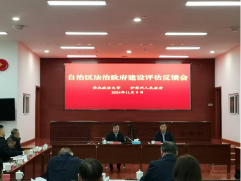 9日王周户教授随同新疆维吾尔自治区司法厅领导赴伊犁哈萨克自治州就其法治政府建设评估情况进行了座谈反馈。王周户教授基于课题组于今年6月3日至7日对伊犁州及其有关市县法治政府建设走访调研并结合相关资料以及网络检索情况,从课题组角度就伊犁州法治政府建设的主要做法和取得的突出成效进行了介绍,同时也就法治政府建设中存在的主要问题及其如何进一步改进谈了看法和认识,还就一些市县司法行政机关相关负责人提出的问题进行了交流讨论。